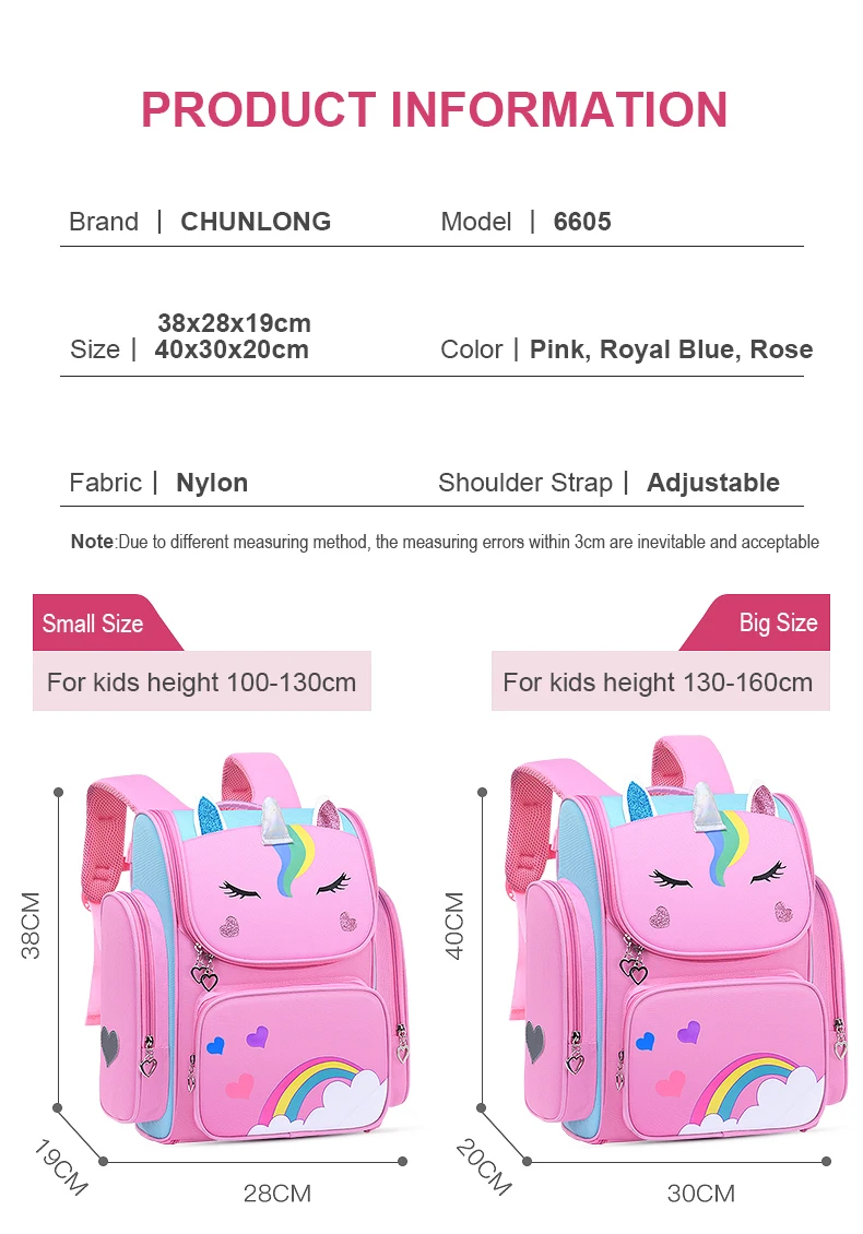 3D Мультфильм ранец с единорогом высокое качество полиэстер Мальчики Девочки Рюкзак Mochila все открытый дизайн школьный рюкзак 6605