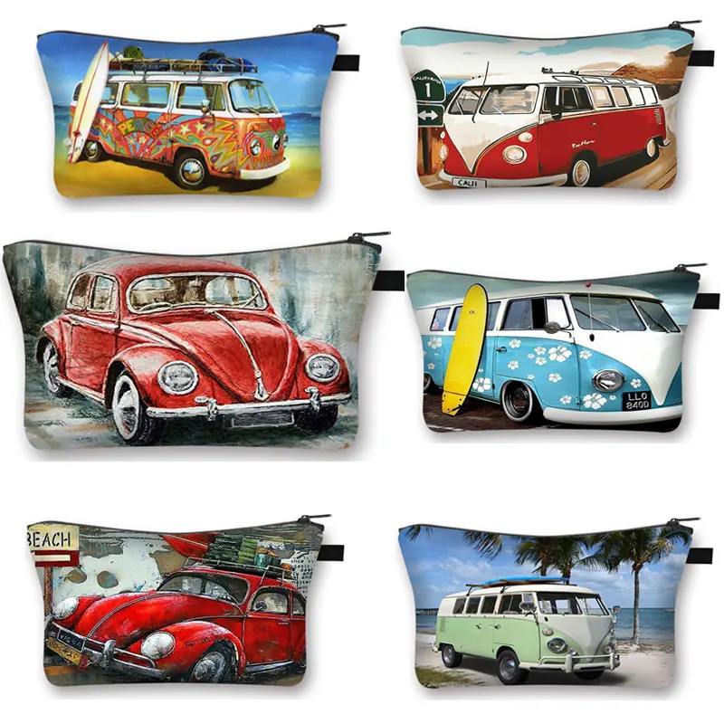 Красочный чехол для косметики с автомобильным принтом, женская косм...