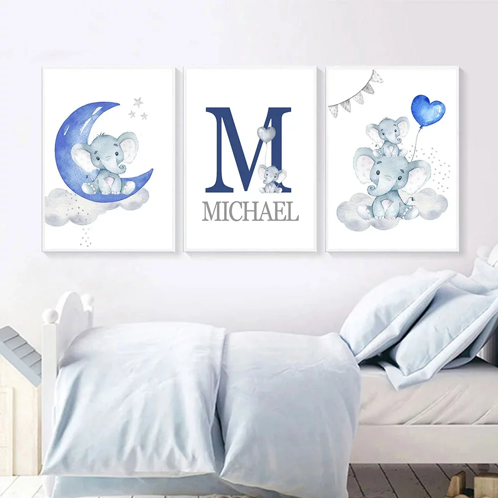 Картина с изображением голубой луны, воздушных шаров, слона, вышивка, мозаика, настенное искусство, пользовательское имя, Скандинавская картина, декор для детской комнаты