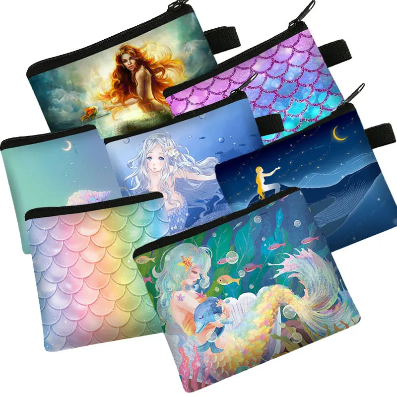 Красивый кошелек для монет с русалочкой, женская сумка для денег, мини-кошелек, сумка для детей, подарок на молнии, портативные сумки для наушников