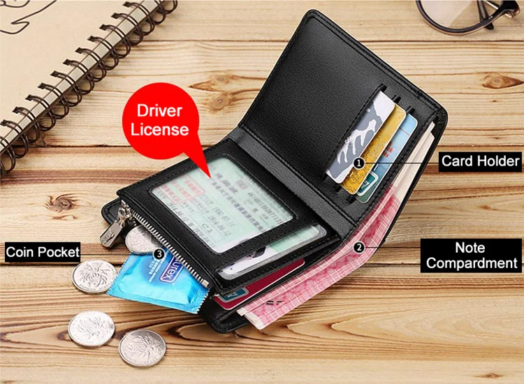 Кошелек мужской кожаный, на молнии, с двойной застежкой, для разных карт и водительских прав, 2021