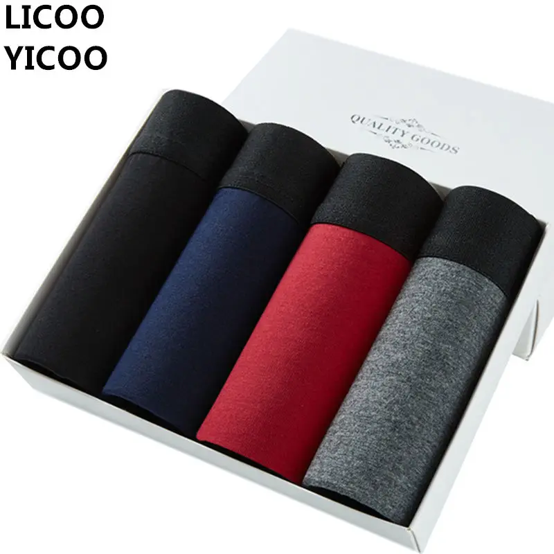 Трусы-боксеры мужские 4 шт., хлопковые шорты, нижнее белье, повседневные, для дома, сна