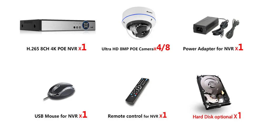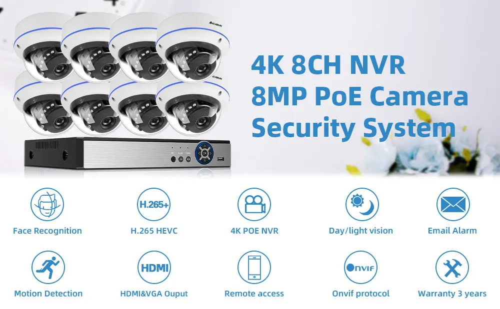 4/8 X H.265 HD POE 8 Мп IP Крытый Открытый ИК дневное ночное видение купольные погодостойкие камеры;