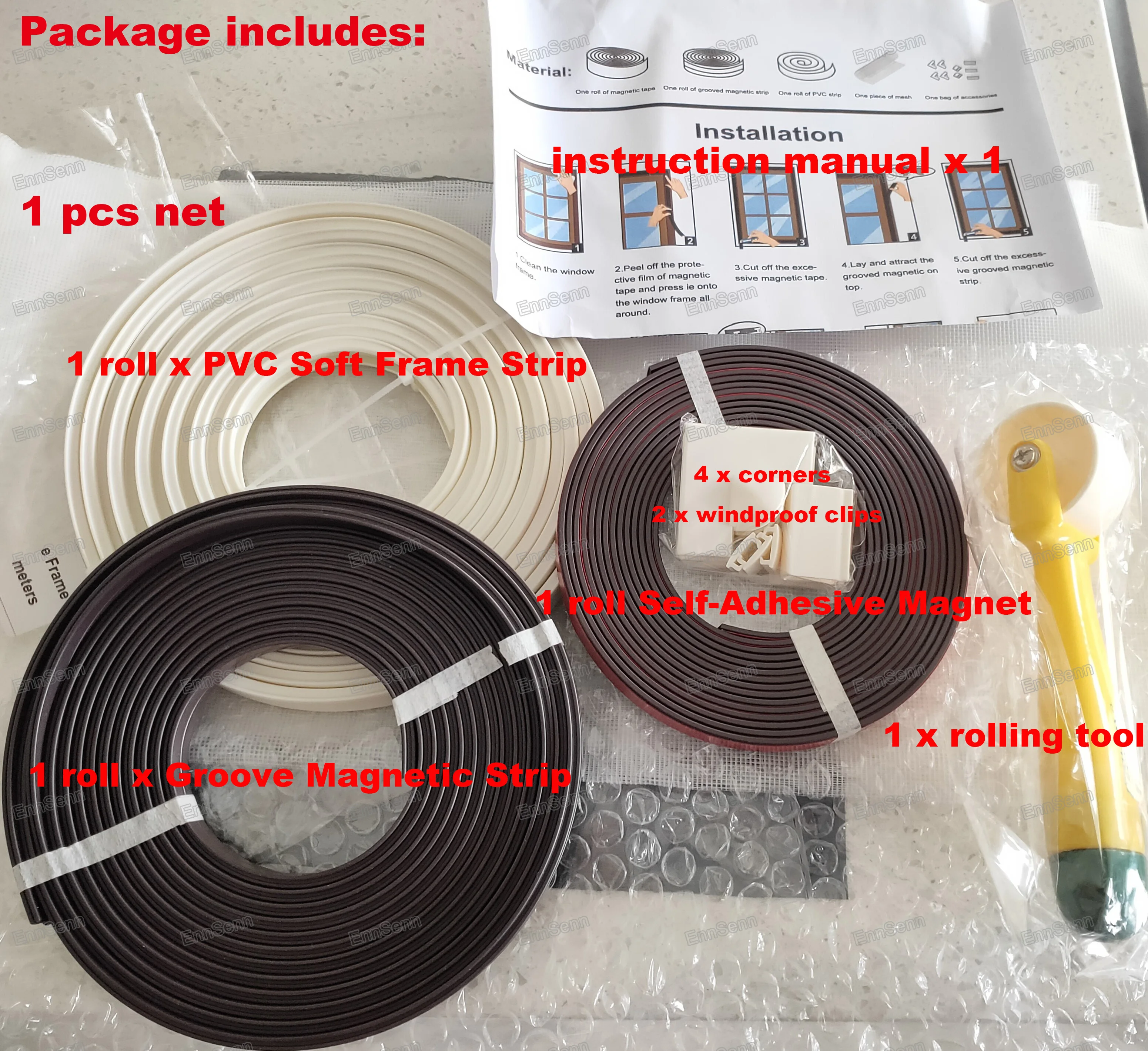 Мгновенная установка-Установите за 10 минут. Посылка ходит: один рулон магнитной ленты, один рулон пластиковой ленты, один кусок сетки, один пакет с аксессуарами и инструкция по эксплуатации. Гарантия 6 месяцев, наслаждайтесь покупкой без риска. Дополнительное обслуживание не требуется. Это хорошая одноразовая доступная инвестиция.