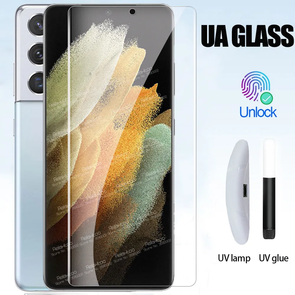Изогнутое защитное стекло с полным УФ-клеем для Samsung Galaxy S21 Ultra S 21 Plus 5G Note 20, Защитная пленка для объектива камеры