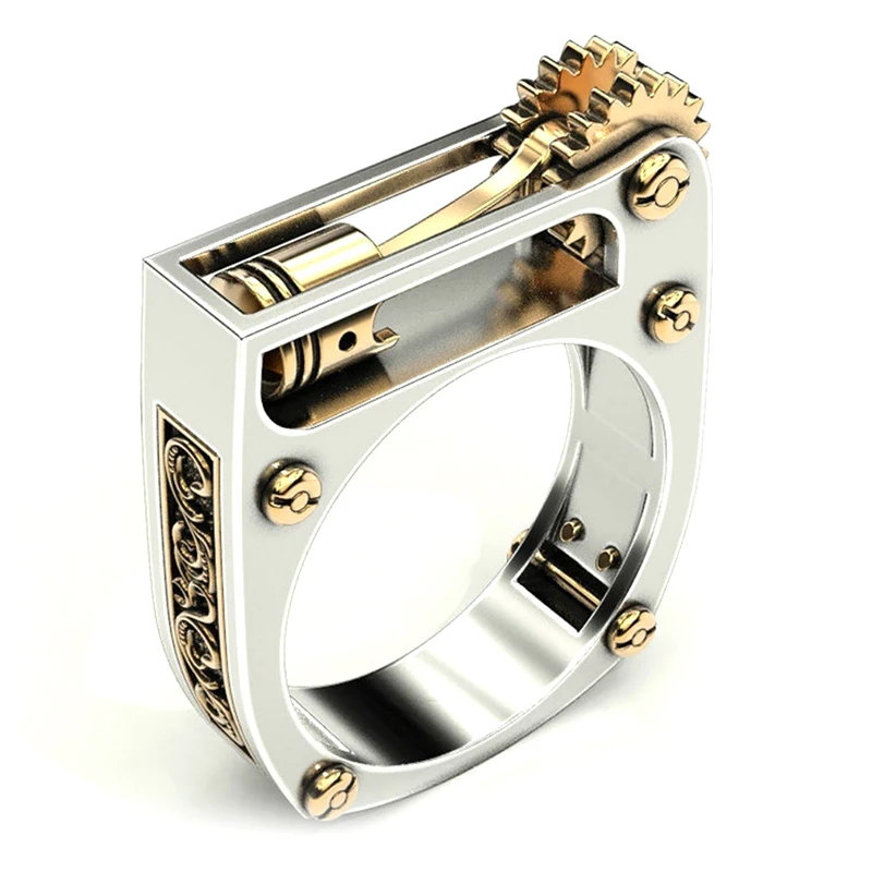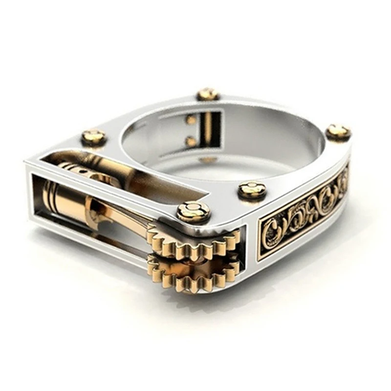 Уникальное креативное двухцветное геометрическое механическое кольцо унисекс, индивидуальное преувеличенное ювелирное изделие в стиле стимпанк