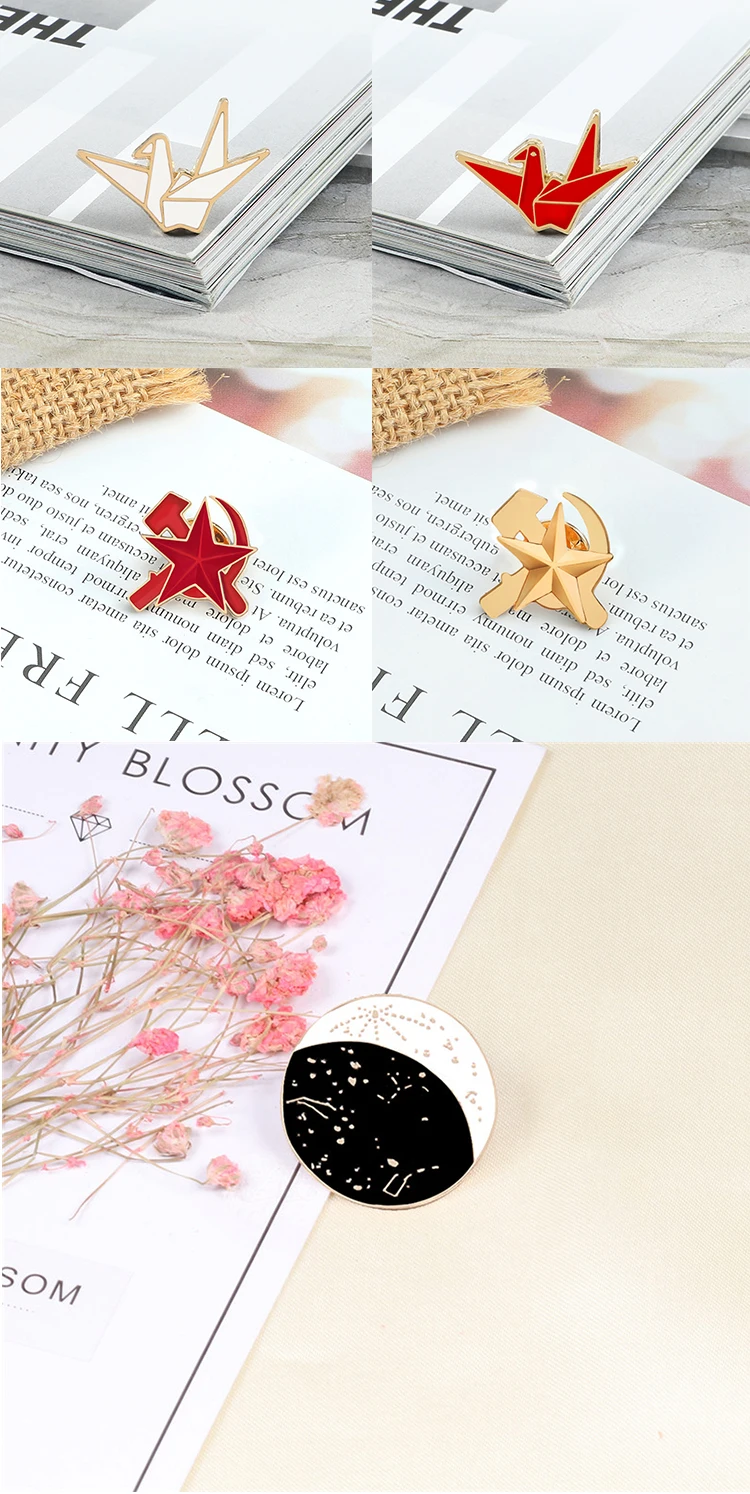 Милые эмалевые булавки для бумажных кранов Lucky Броши оригами, мет...