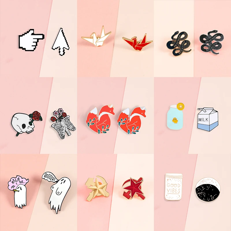 2 шт.компл. эмалированная булавка в комплекте, Череп, лиса, змея, призрак, птица, стрела, чашка, брошь на сумку, одежду, лацкан, булавка, значок, милое мультяшное животное, ювелирное изделие, подарок