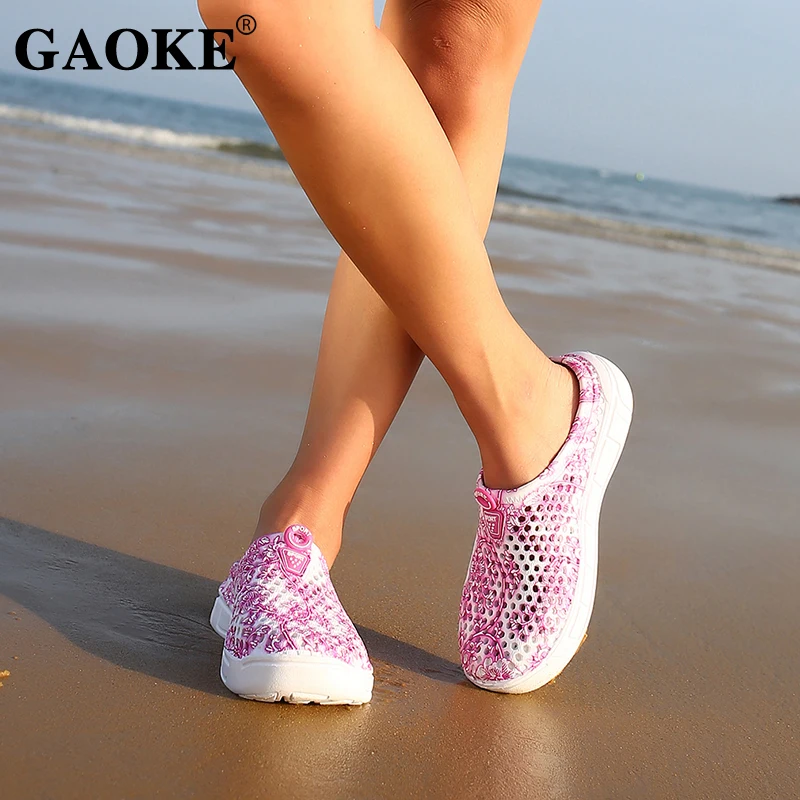 Шлепанцы женские пляжные, дышащие сетчатые сандалии с цветочным при...