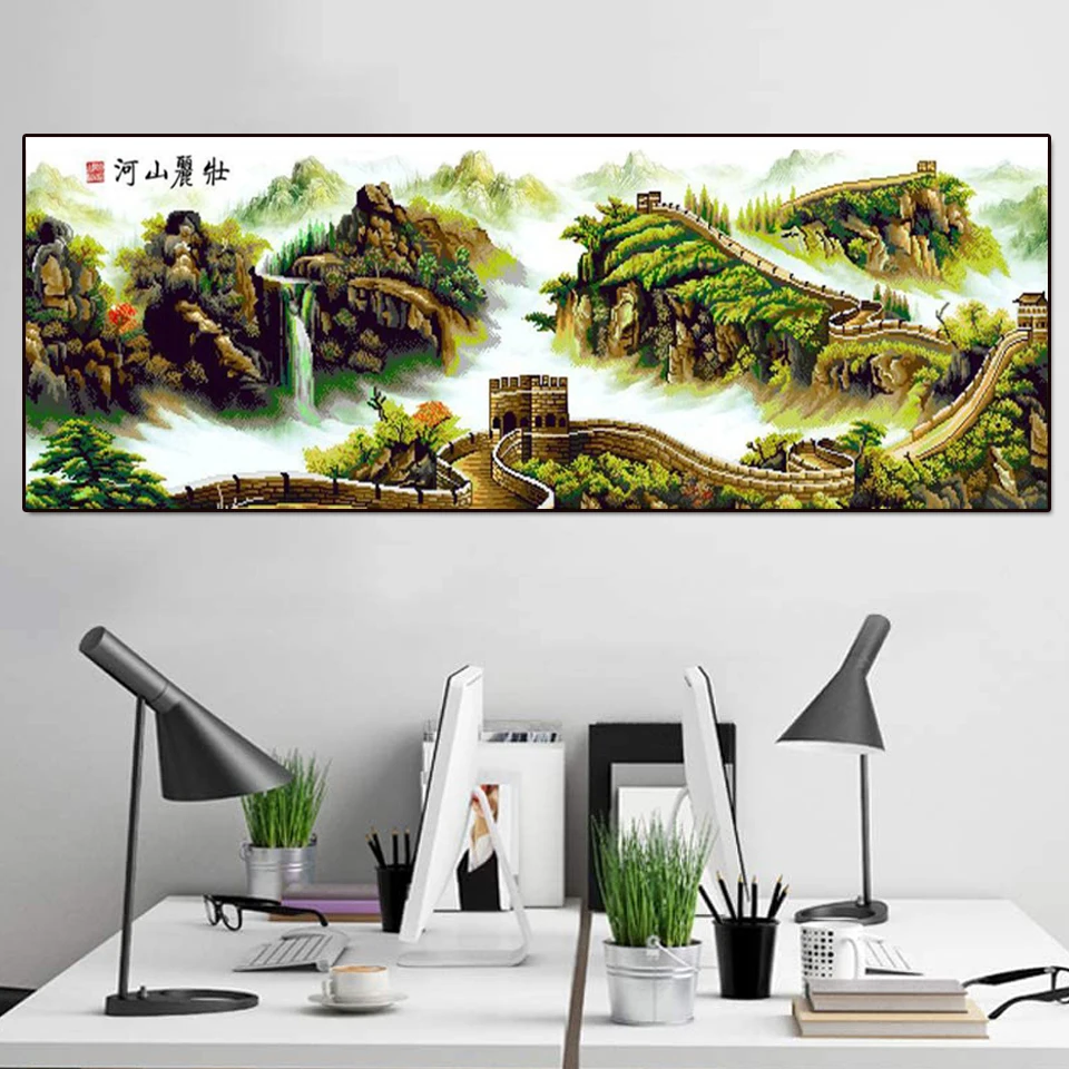 Алмазная 5d Вышивка, набор для алмазной живописи, Алмазная мозаика сделай сам, горы и реки Великой стены Китая YG2446