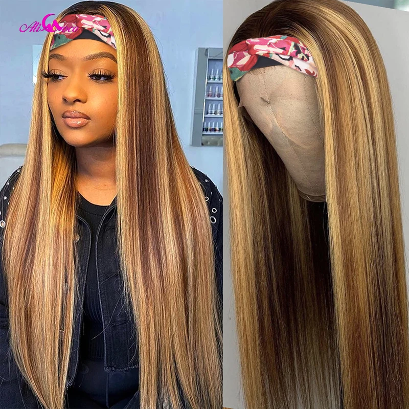 Али Коко хайлайтер Цвет 27 прямые лента для волос манекен для шарфа парика бесклеевой парик из человеческих волос для чернокожих Для женщин доступная парик с головной повязкой