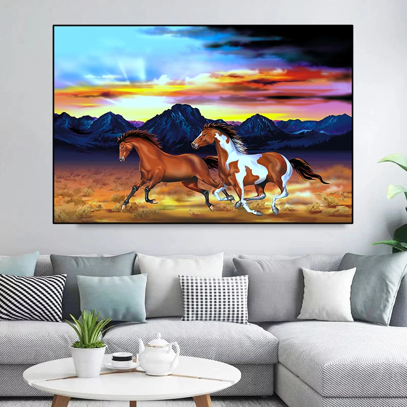 Картина на холсте с животными в скандинавском стиле, настенный постер с изображением двух Бегущих Лошадей, Современный домашний декор, печать картин для спальни