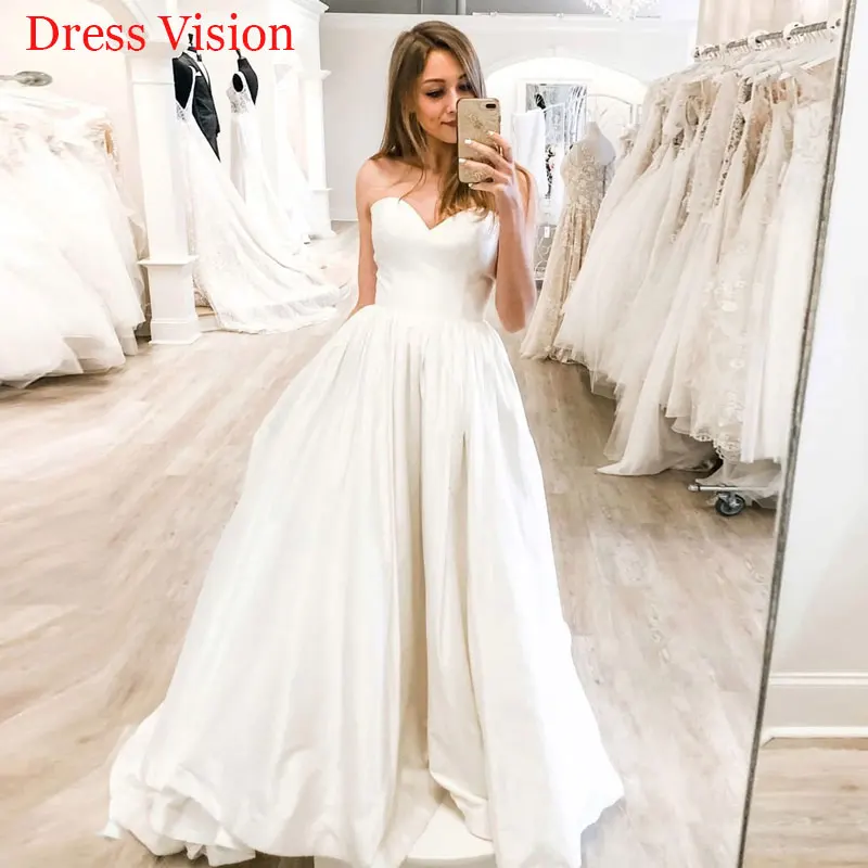 2021 роскошное атласное ТРАПЕЦИЕВИДНОЕ свадебное платье с карманами...