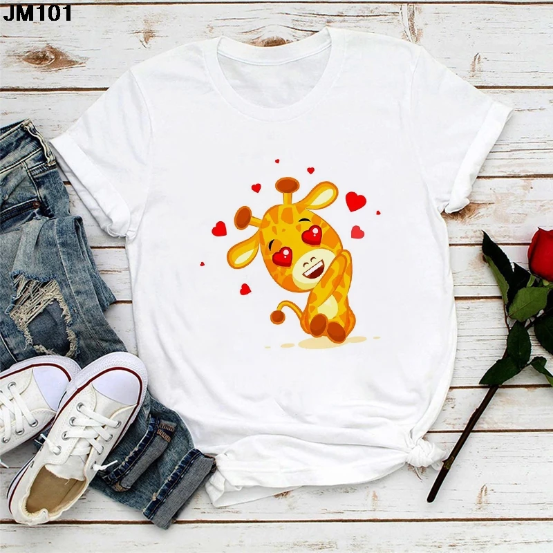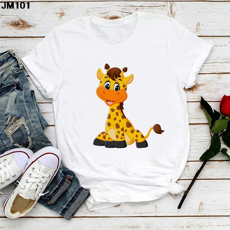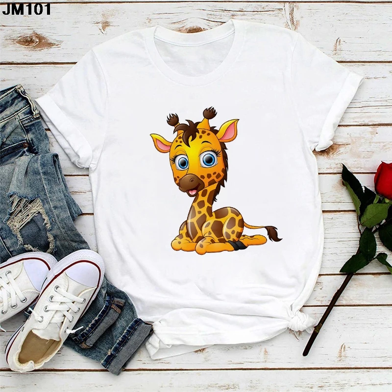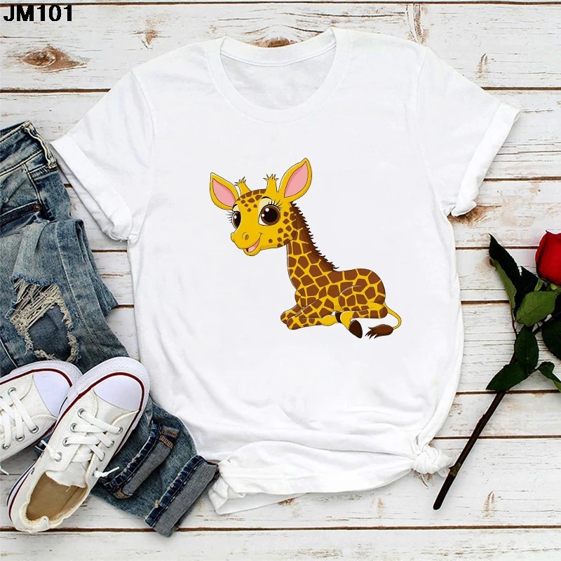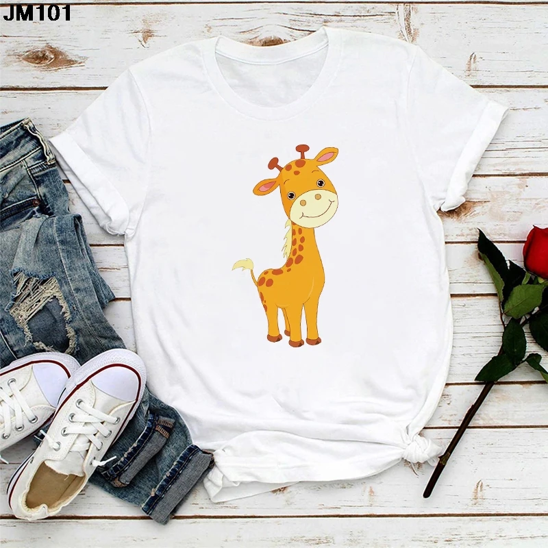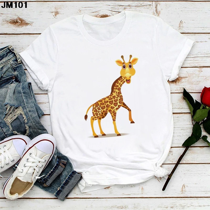 Футболка женская с принтом в виде животных, летняя, с круглым вырез...