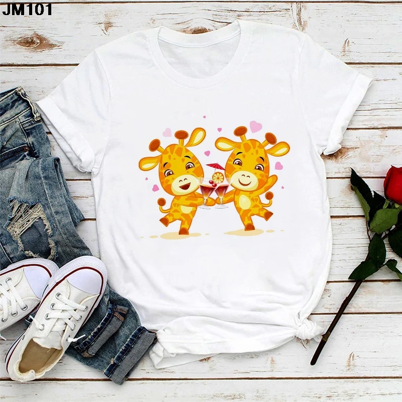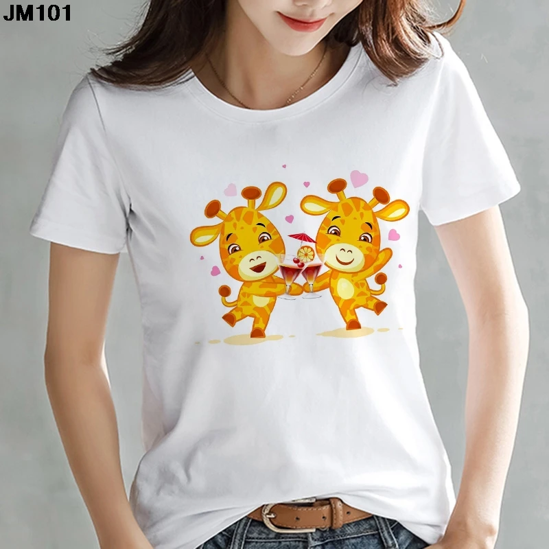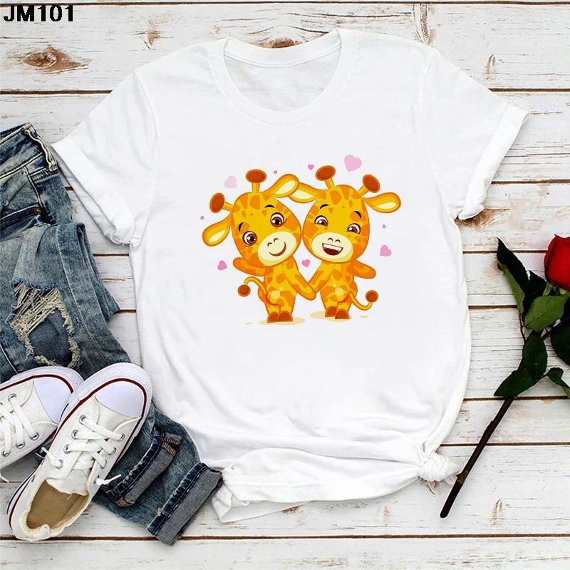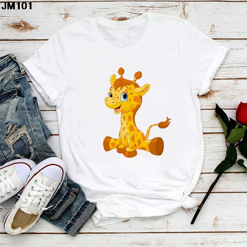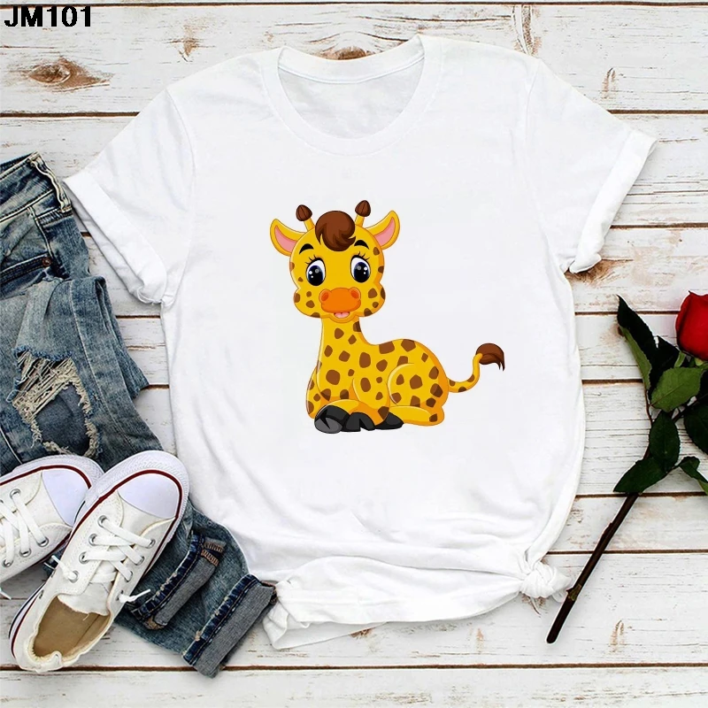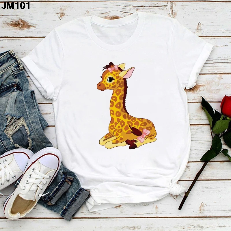 Футболка женская с принтом в виде животных, летняя, с круглым вырез...