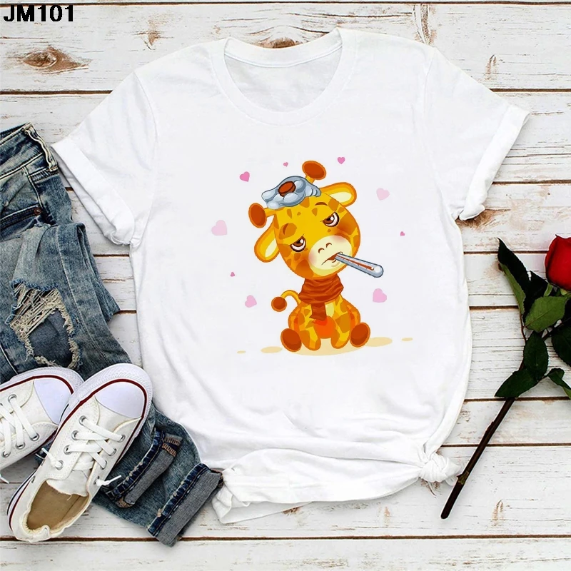 Футболка женская с круглым вырезом, Забавный Милый мультяшный принт...