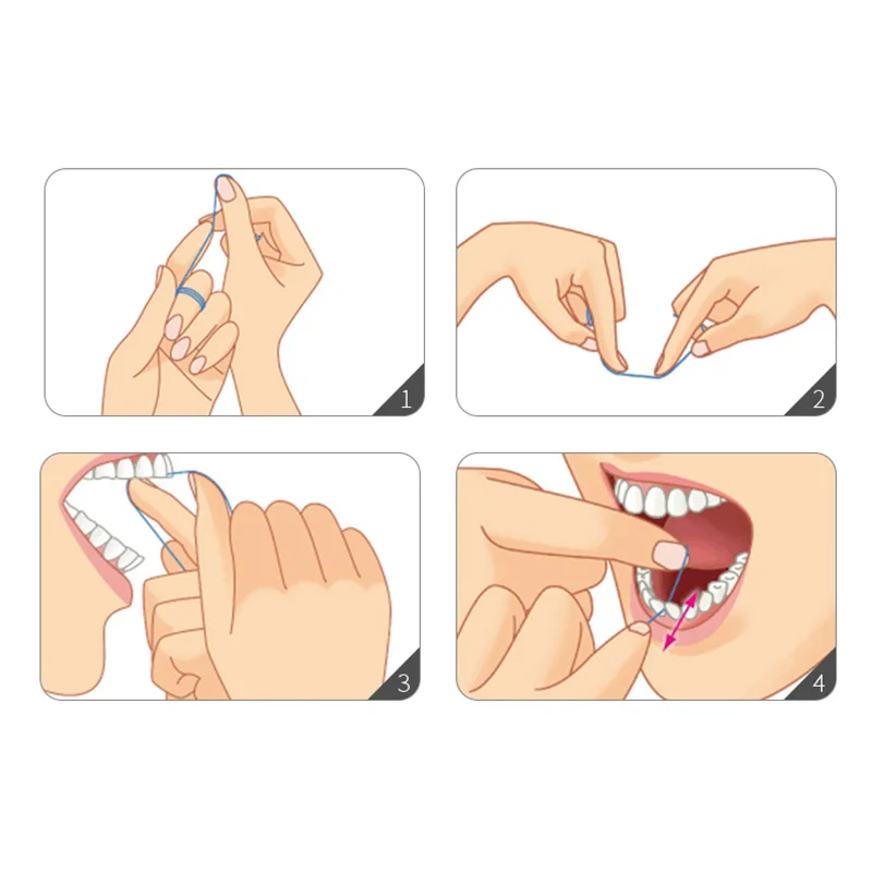Производство зубной нити является чистым, гладким и гибким. Без волос, без проволоки, без воска и может эффективно предотвращать и обрабатывать зубную боль.