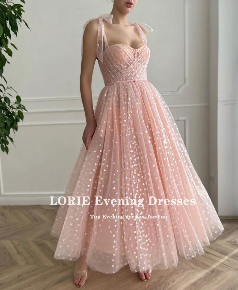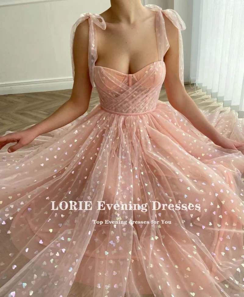 Блестящие платья для выпускного вечера LORIE, милое Персиковое Тюлевое платье длиной до середины икры, короткое коктейльное платье для выпускного вечера