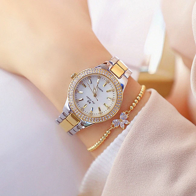 Женские наручные часы из нержавеющей стали, серебристые золотистые часы с кристаллами и бриллиантами, модель 2021, 2020