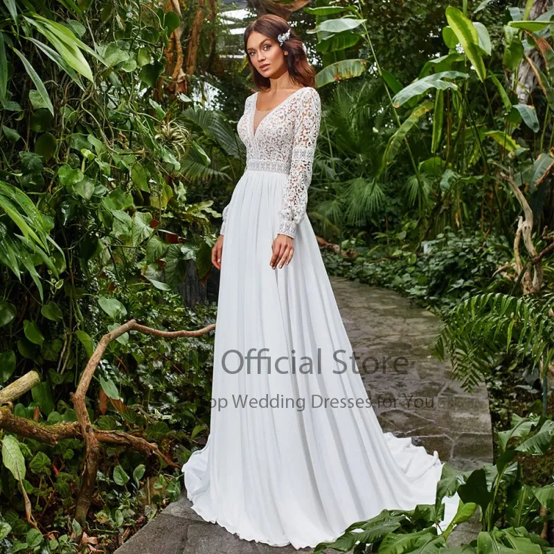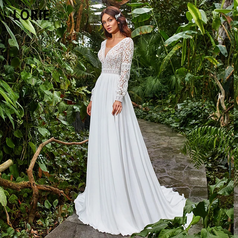 Свадебные платья LORIE в богемном стиле, кружевные шифоновые арабские Свадебные платья с V-образным вырезом и длинным рукавом, женская свадебная одежда