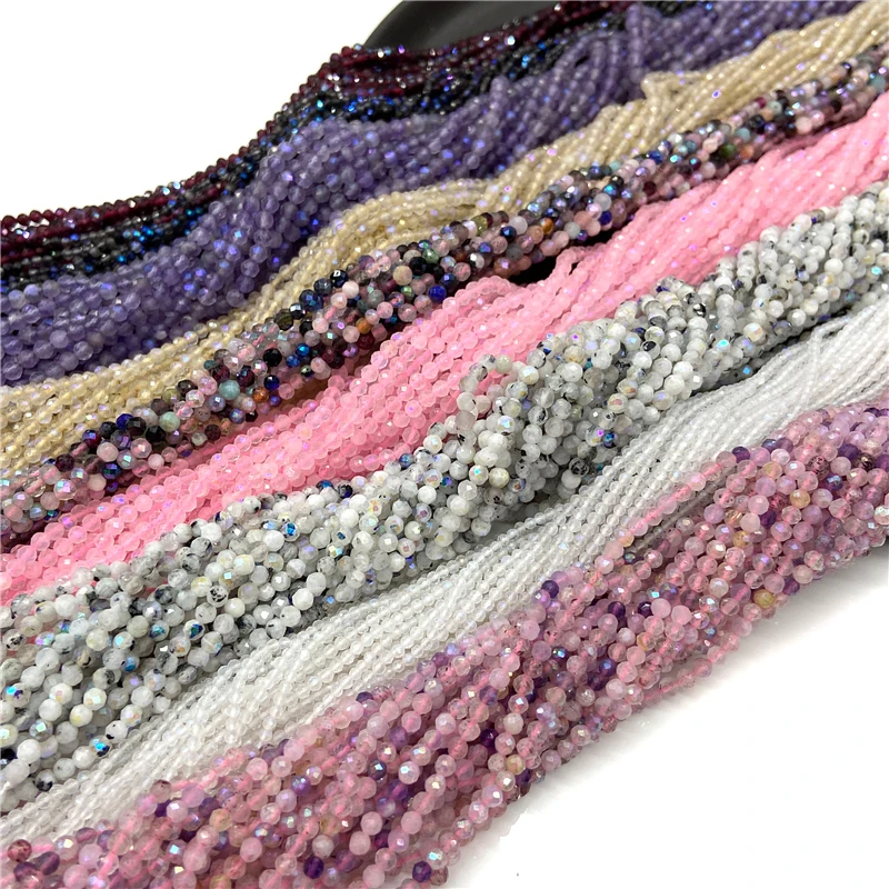 Граненые бусины из натурального камня 2, 3 мм, циркон, розовый кварц, аметист, рубиновый Агат, бисер для изготовления ювелирных изделий, принадлежности для рукоделия