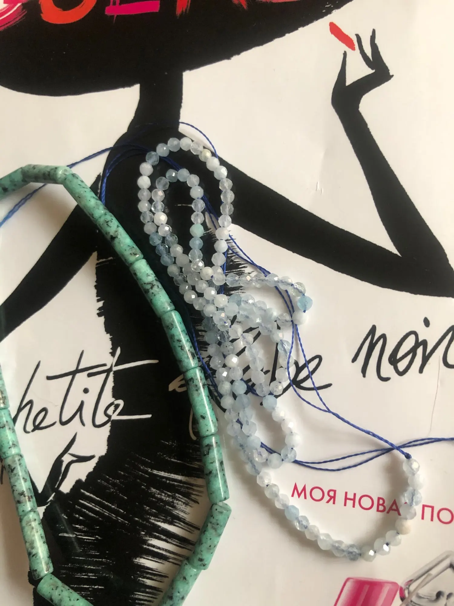 Камешки прекрасные, но ниточка маленькая, совсем не как на фото. Доставка очень быстрая