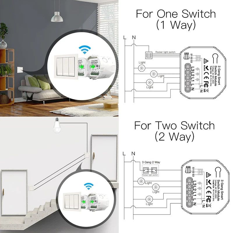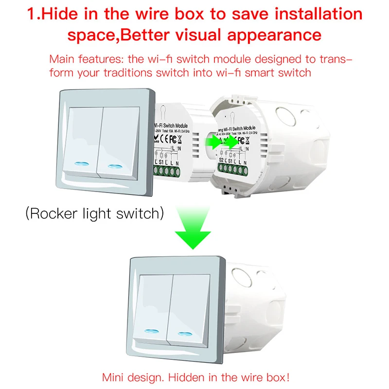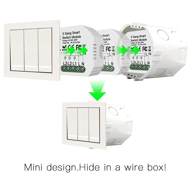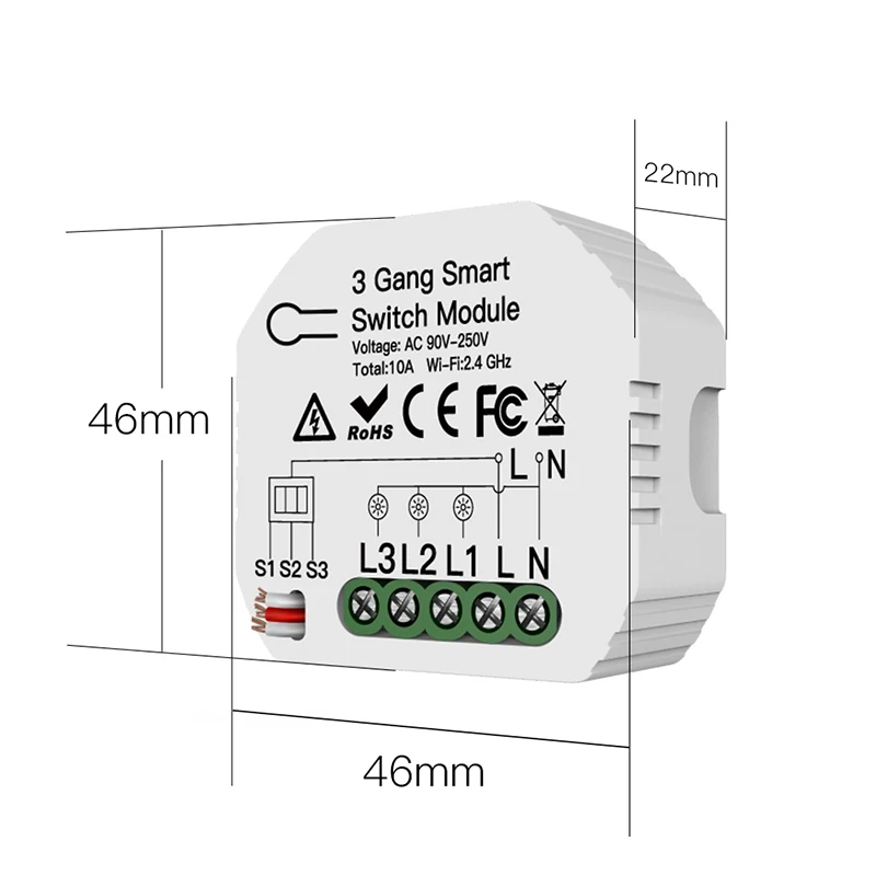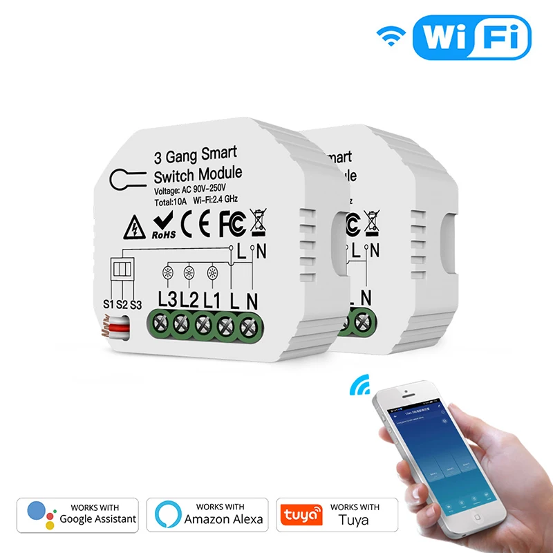 100% новый и высокое качество!1. Умный модуль Wi-Fi с мини-дизайном, который подходит для британских и европейских настенных переключателей; Компактный размер позволяет легко поместиться без изменений в вашем домашнем декоре; Превращает совместимые продукты в умные за считанные секунды; возможность самостоятельной работы традиционного переключателя без помех; Подходит только для перекидного переключателя2. 3-gang Настенные переключатели поддерживается; Может использоваться в качестве 1-way или 2-полосная цепью повторного включения (2 переключателя управления 1 светильник); просто подключите к 1 из 2 выключателей и преобразуйте подключенное устройство в умный (для 2-полосной цепи)3. Позволяет осуществлять голосовое и Беспроводное дистанционное управление без рук; Совместимость с Alexa Echo и Google Home; Удаленное управление устройствами с вашим смартфоном, где бы вы ни находились, даже когда вы находитесь вдали от дома; функция памяти с включением/выключением/запоминанием последнего состояния поддерживается в приложении Smart Life Tuya.4. Полностью Контролируйте подключенные устройства с таймером, расписанием и обратным отсчетом (1/5/30 минут, 1 час и т. д.) с помощью приложения; Делитесь контролем с семьей и друзьями для дополнительного удобства.5. Управление с помощью смартфона через приложение smart Life/Tuya без отдельного концентратора; Гораздо более легкий режим сопряжения для добавления устройства с подключением Wi-Fi и BluetoothОсобенности: 1. Маленький размер, скрытый в коробке переключателя2. Традиционный переключатель и умный переключатель работают независимо и не мешают друг другу3. Используется для 2 позиционный переключатель, два переключателя управления одной и той же светильник4. Может управлять 3 бандами 2 позиционных переключателейХарактеристики:Тип товара: модуль WIFI с 3 бандамиНапряжение: 90-250 В переменного токаТок: всего 10 АWI-FI частота: 2,4 ГГц WI-FIОперация temp.10C-+ 40-CЧехол temp:Ta: + 80C (макс.)Рабочий диапазон <200 мДиаметр (Ш x В):52x47x22 ммIP рейтинг P20Посылка включает в себя:1 * модуль переключения1 * Разъем1 * Инструкция