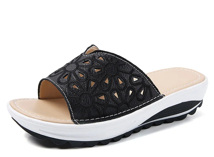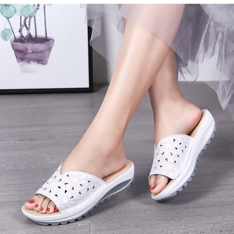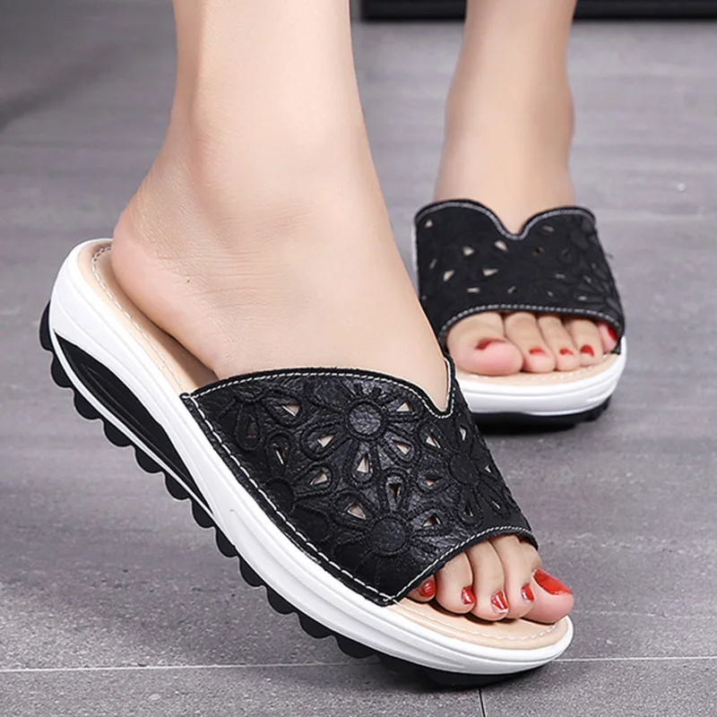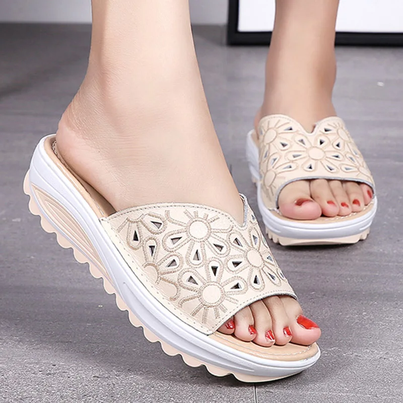 Сандалии на танкетке женские, повседневные Босоножки на платформе, без застежки, с цветами, 2021