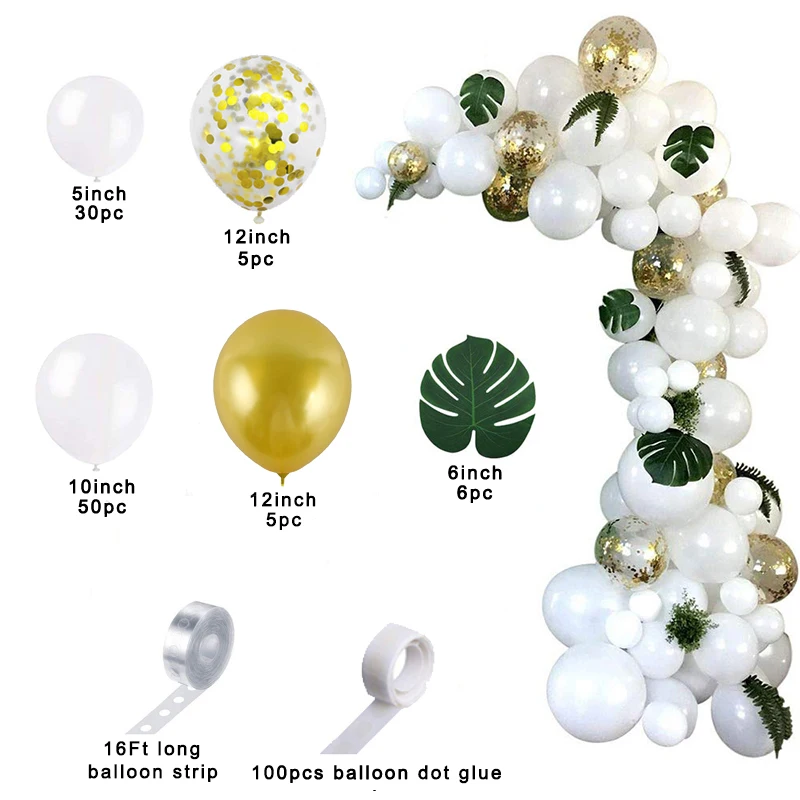 98 шт.компл. белые золотые шары арочный комплект для дня рождения Свадебные украшения белого цвета с зелеными листьями