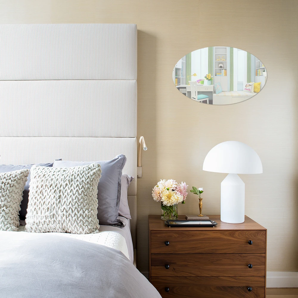 Овальные прямоугольные гибкие наклейки для украшения дома, гостиной, самоклеящиеся светоотражающие наклейки на стены для ванной комнаты, комнаты, зеркала