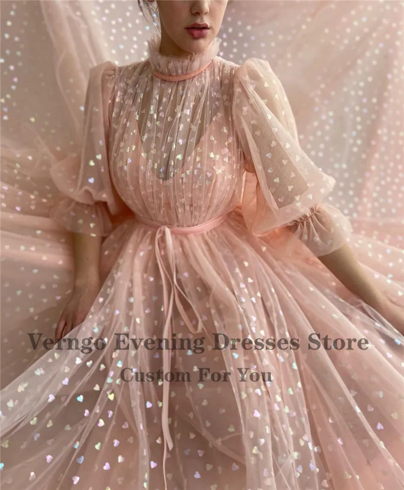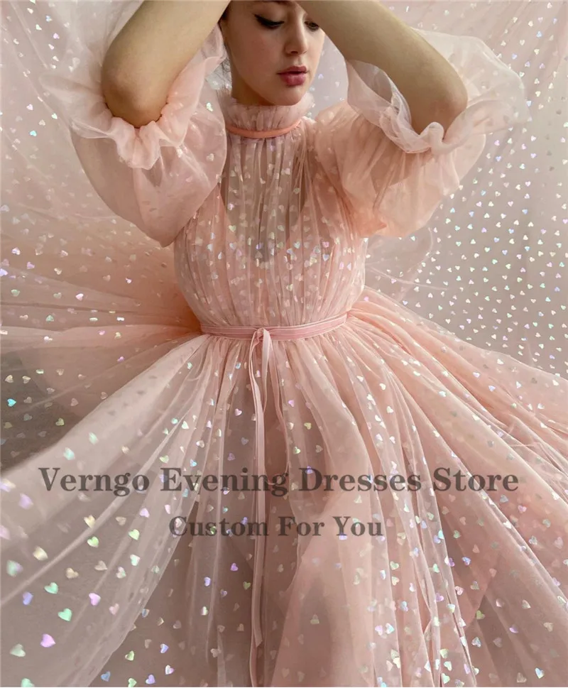 Женское вечернее платье-трапеция, с пышными рукавами, с высоким воротом, в пол, Verngo, 2021
