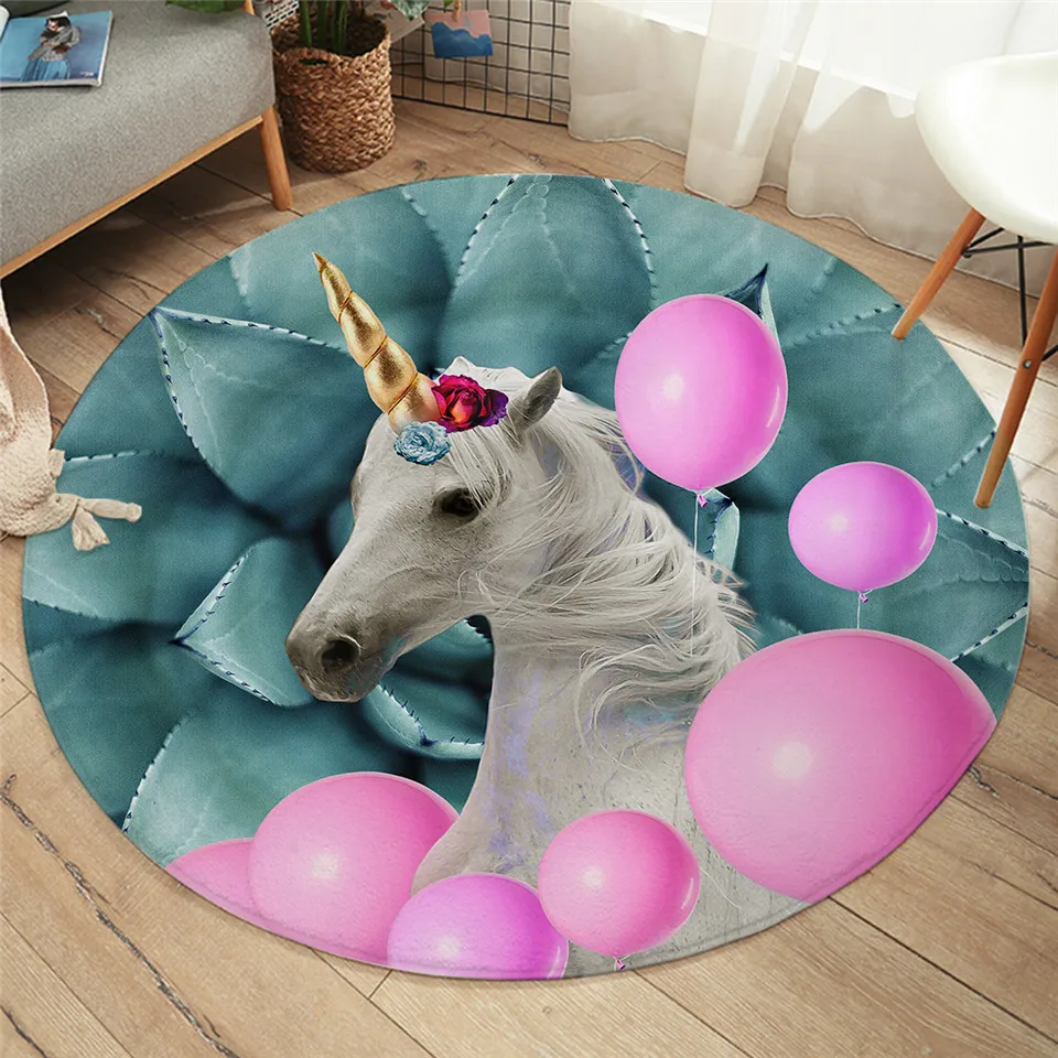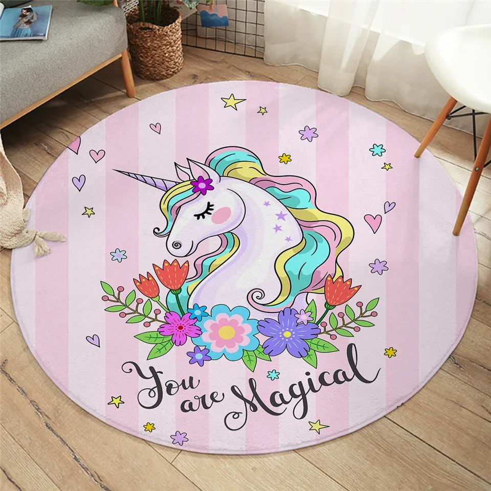 Круглый мультяшный ковер Русалка Единорог напечатанные зоны коврики...