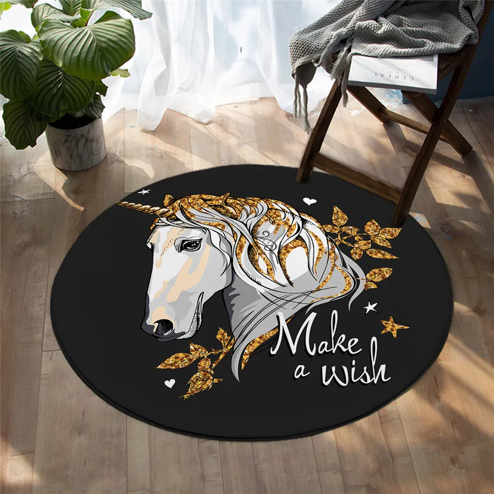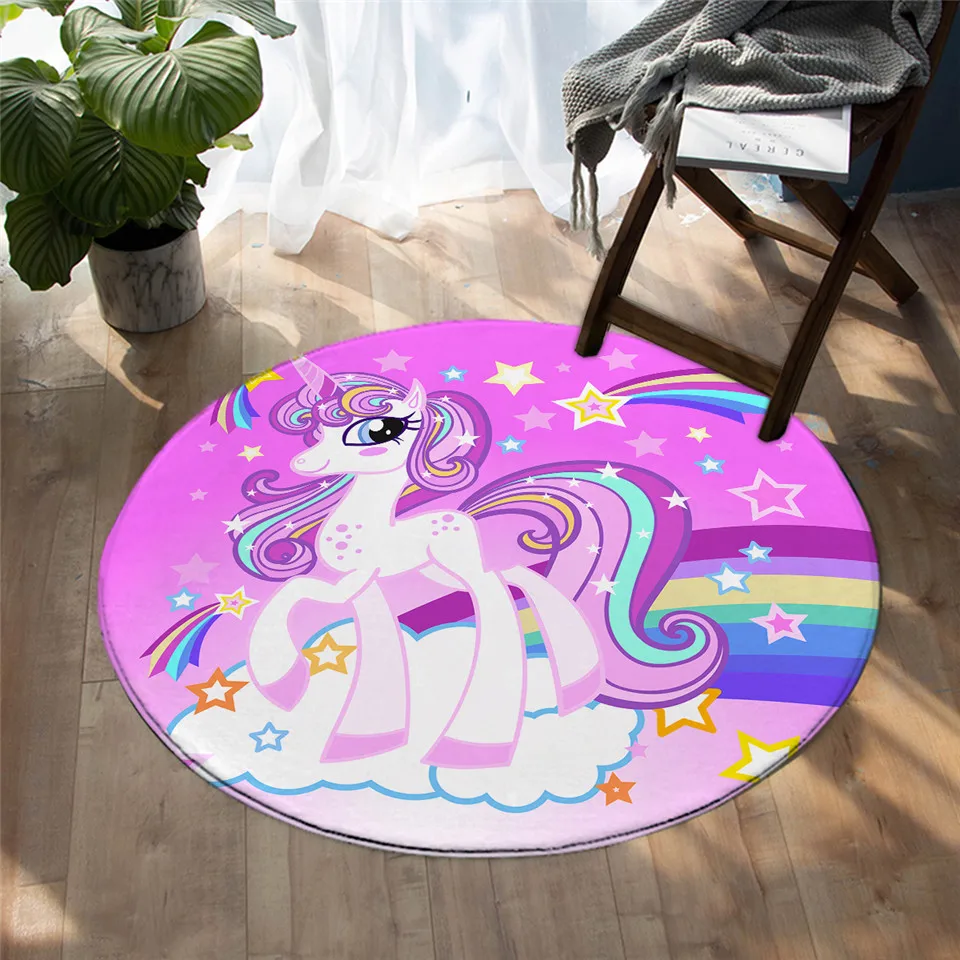 Постельные принадлежности, напольный коврик в виде единорога для спальни, цветной круглый ковер со звездами, Радужный коврик, нескользящий декоративный коврик для гостиной, Alfombra, Прямая поставка