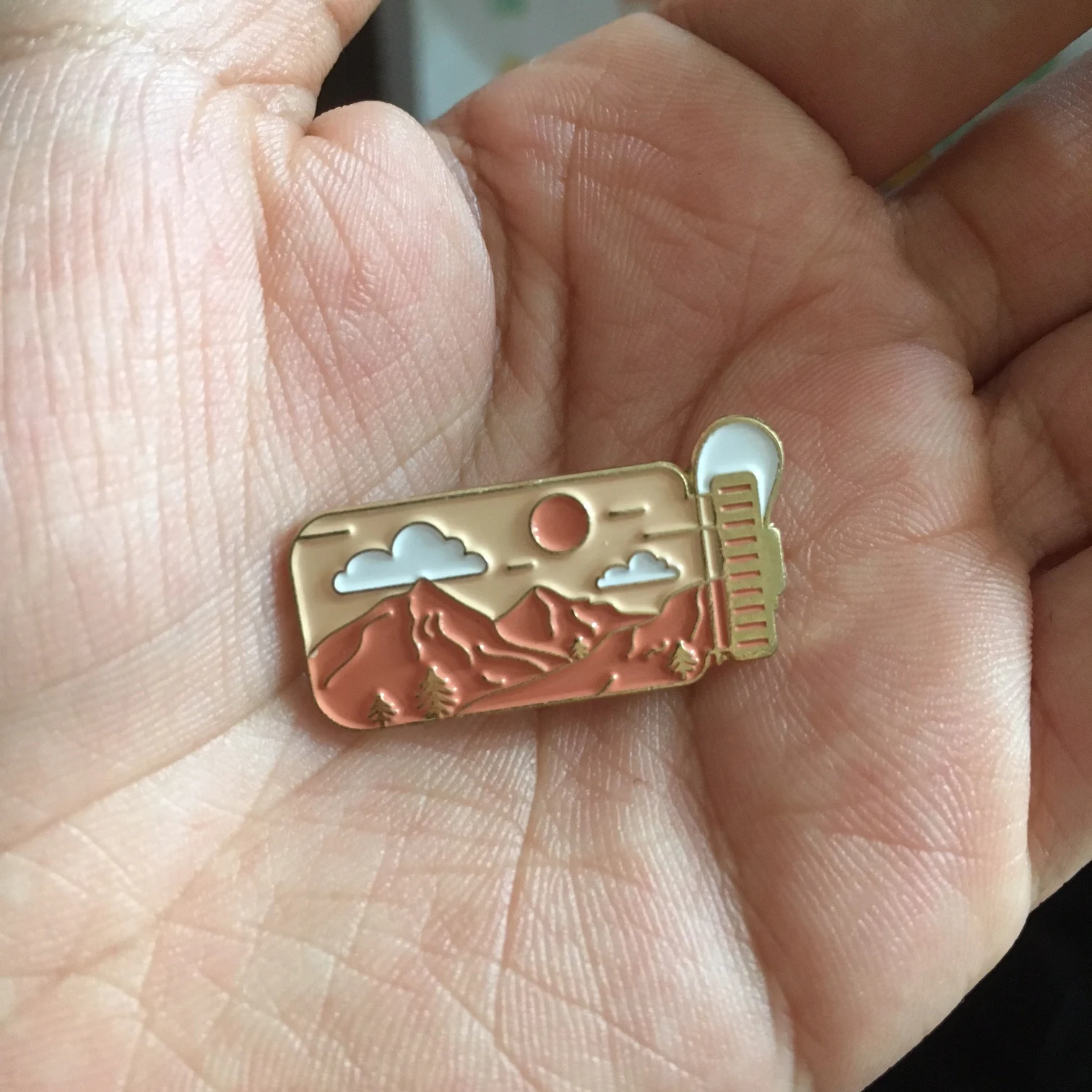 Брошь женская эмалированная, с изображением горы, звездной ночи