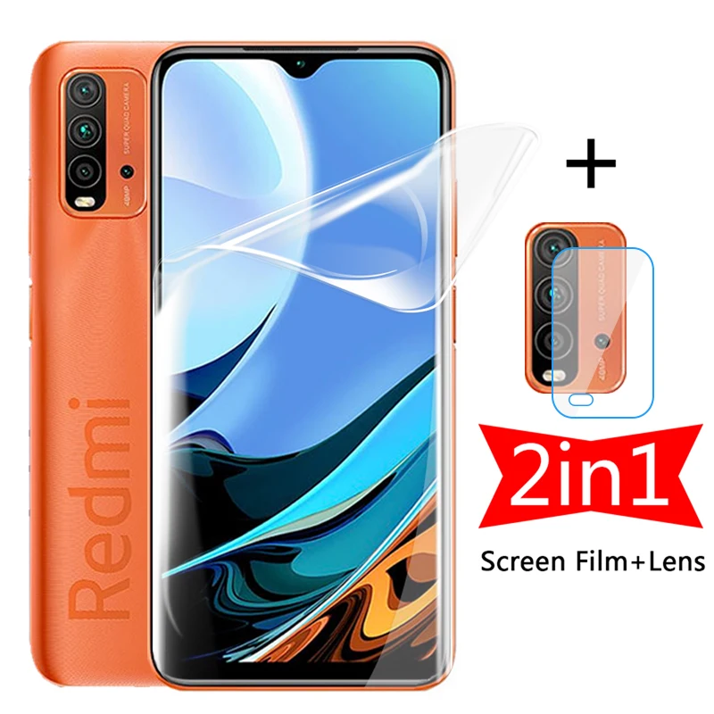 Гидрогелевая пленка 2 в 1 для Xiaomi Redmi 9T, Note 9T, полное покрытие, защита экрана, защита объектива камеры Xaiomi, не защитное стекло