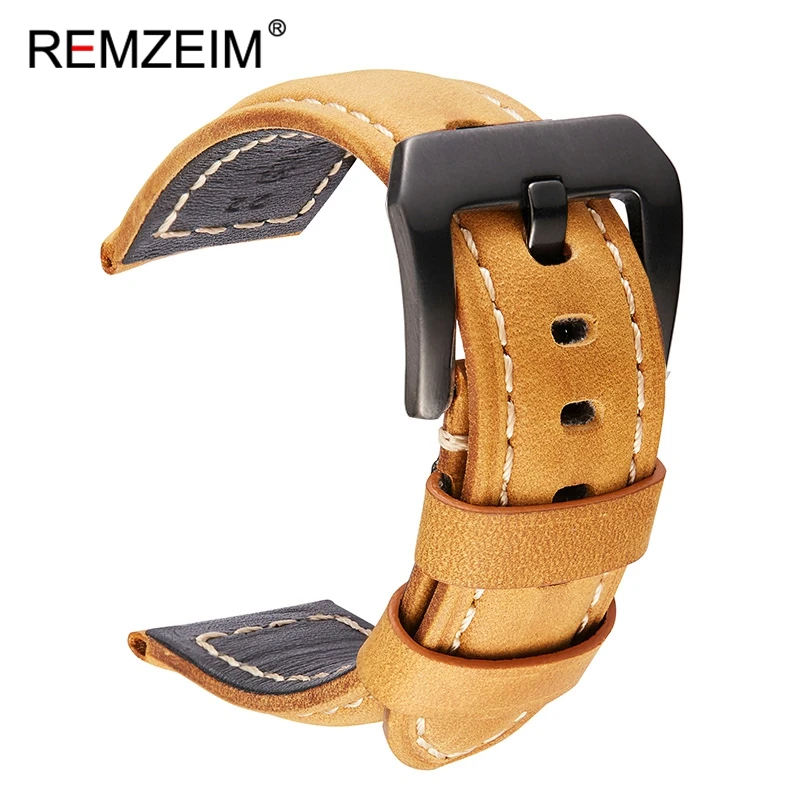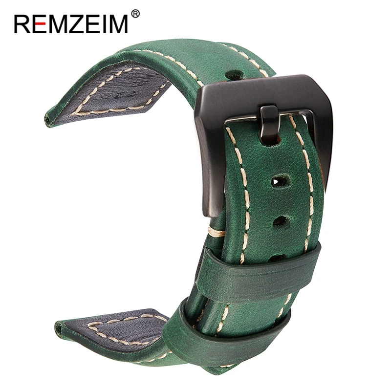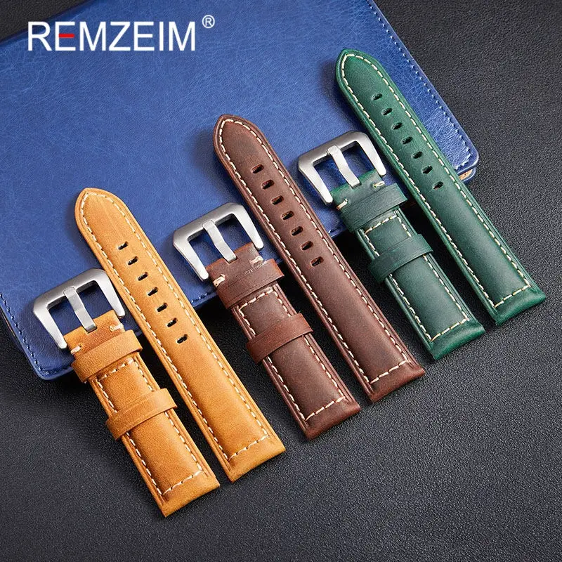 REMZEIM горячая Распродажа ручной ремешок для часов из коровьей кожи 4 цвета в наличии Винтаж кожаный ремешок для наручных часов 20 мм22 мм24 мм диаметром 26 мм, ремешок для часов