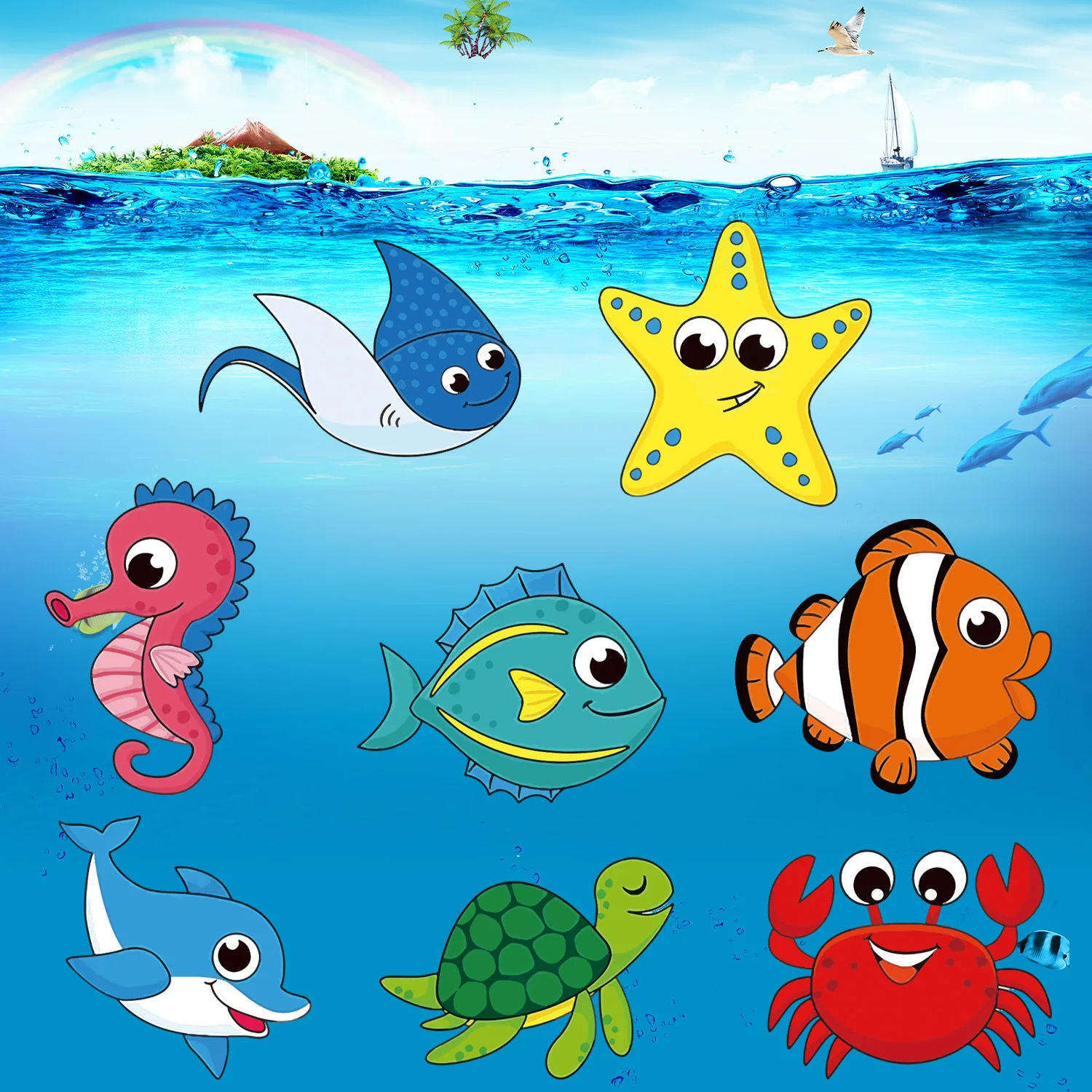Наклейки детские круглые с морскими животными, 500 шт.рулон, 8 видов конструкций