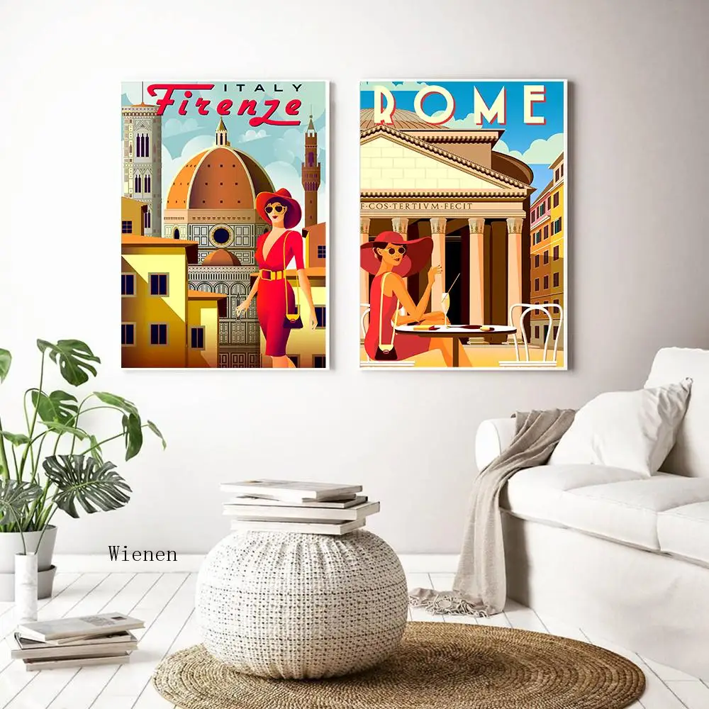 Модный постер Hd с героями мультфильмов, Италия, Рим, Капри, Тоскана, путешествия, городской пейзаж, холст, живопись, настенное искусство, картина для декора интерьера