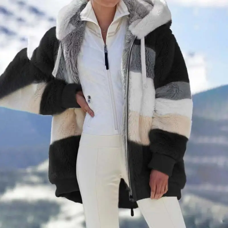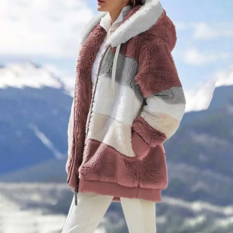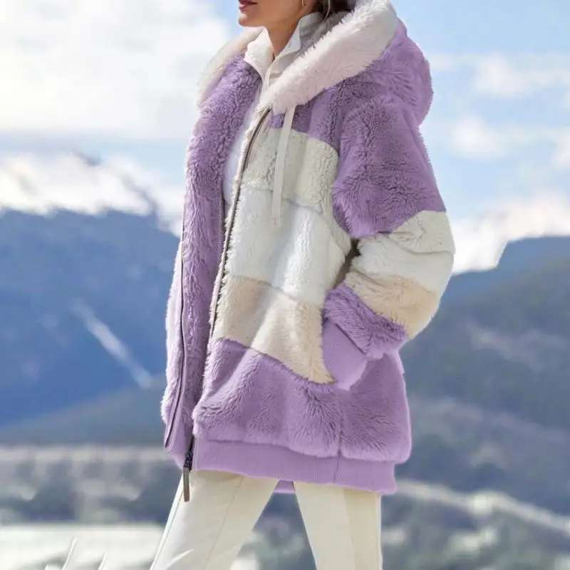 Куртка женская с подкладкой из овечьей шерсти, ветрозащитная Повседневная теплая кашемировая куртка на молнии, контрастный цвет, весна-осень, 2021