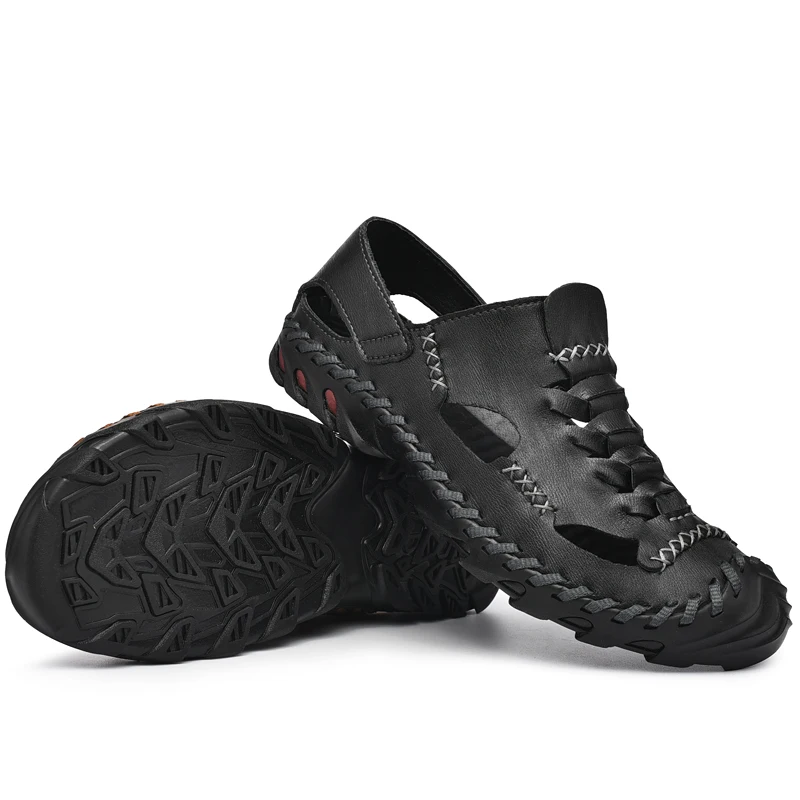 Сандалии мужские из натуральной кожи, дышащие, летняя повседневная обувь для пляжа, Нескользящие, римские шлепанцы, размера плюс 38-46