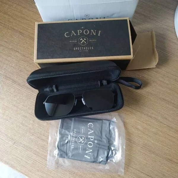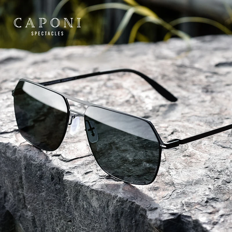 Мужские солнцезащитные очки CAPONI, поляризационные квадратные нейлоновые линзы с защитой от ультрафиолета черного цвета, мужские солнцезащитные очки без винта CP2007
