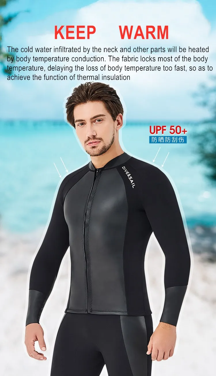 Мужской неопреновый гидрокостюм 2 мм, куртка с длинным рукавом и мо...