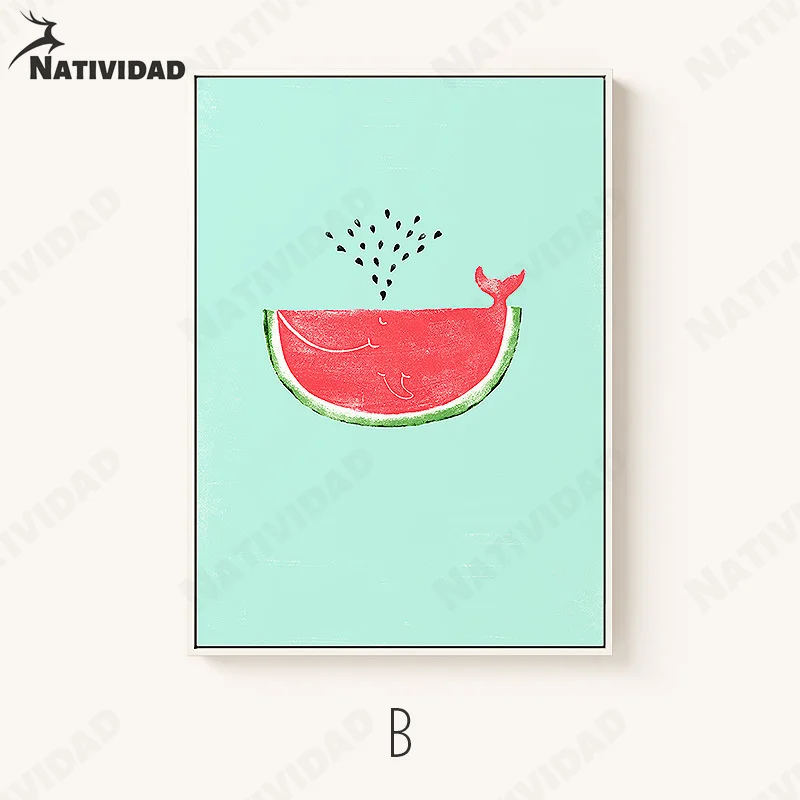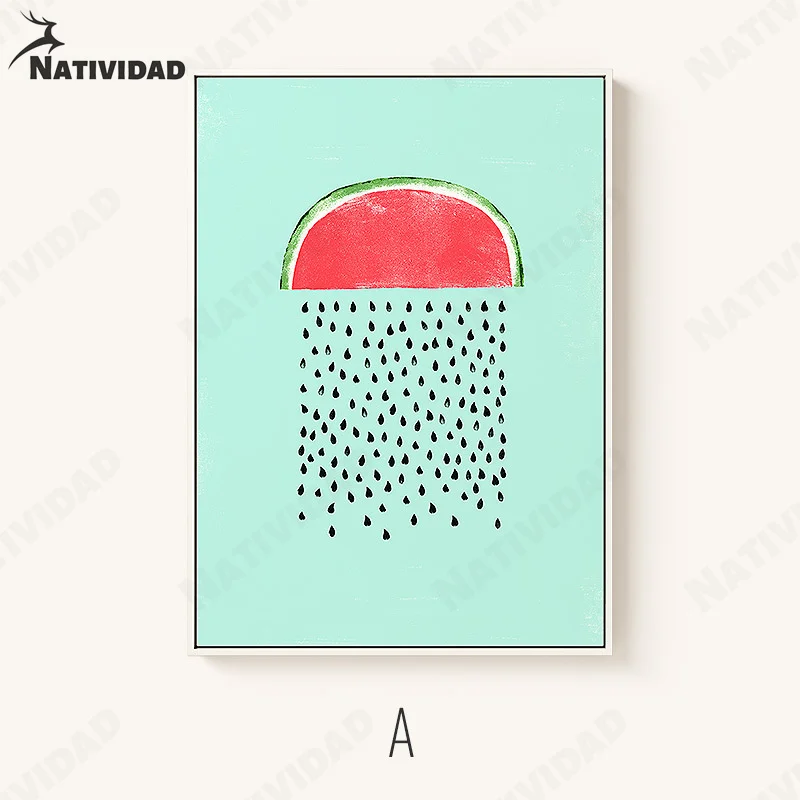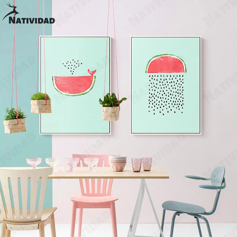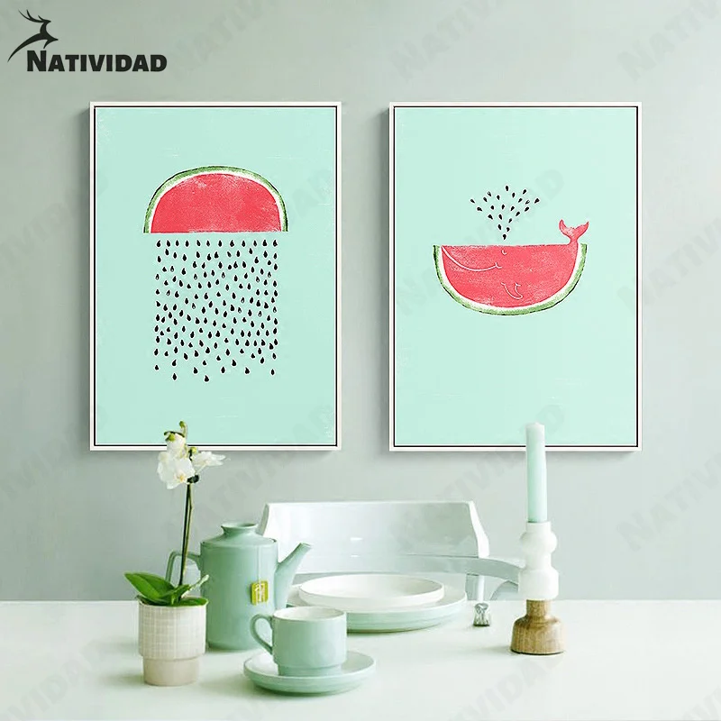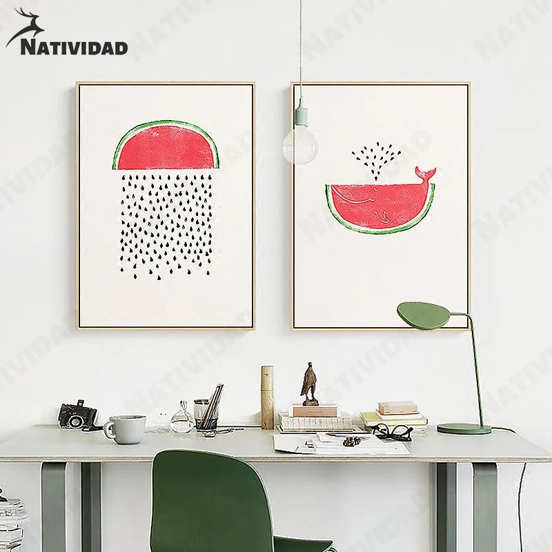 Современная Корейская Милая летняя картина из арбуза и фруктов, мультяшное украшение, украшение для гостиной, эстетический печатный плакат, искусство