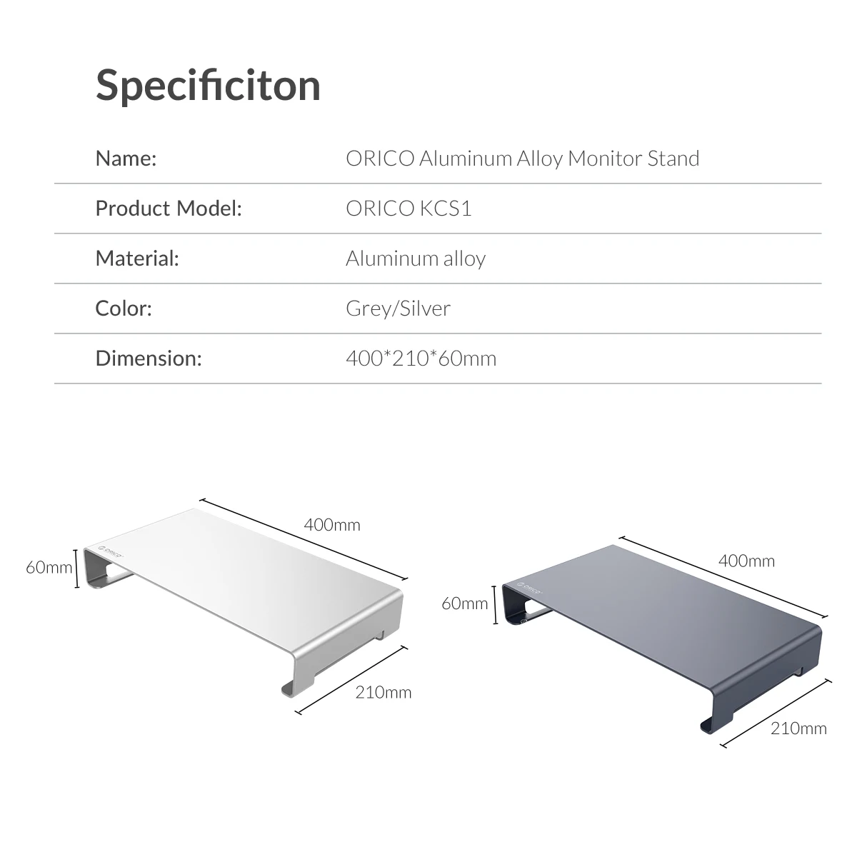 Подставка для монитора ORICO алюминиевая, металлическая универсальная подставка для ноутбука, для клавиатуры, мыши, кабеля, Органайзер Для iMac, MacBook, ПК