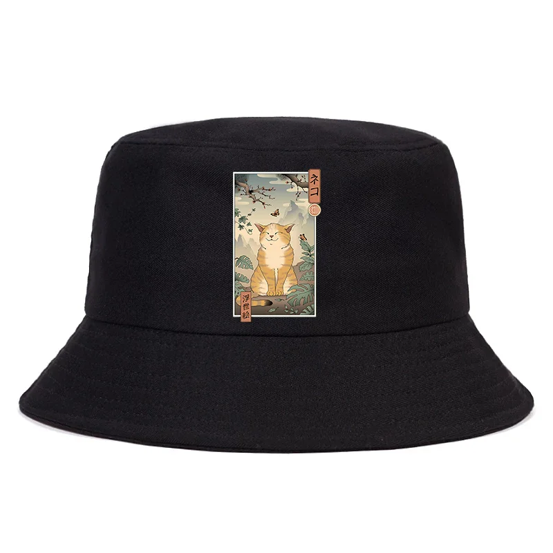 2021 японская Мужскаяженская шляпа-Панама с мультяшным принтом кошки