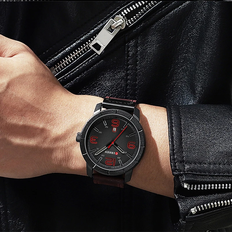Часы мужские кварцевые в стиле милитари, с кожаным ремешком