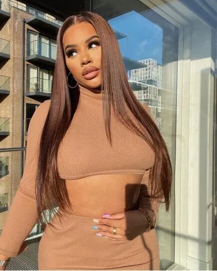 Страна: UK Color: Chocolate Brown Density: 150Density 13x4 Wig Stretched Length: 24inches Доставка: DHL 13.12.2021