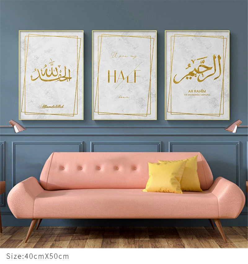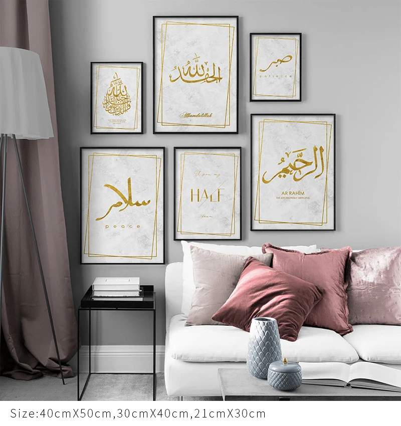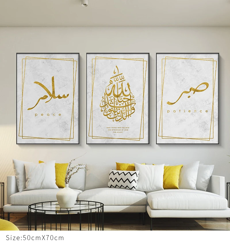 Плакат с изображением мусульманской Арабской Каллиграфии, золотой мир, терпение, Картина на холсте, мусульманские настенные картины, картины для украшения интерьера дома