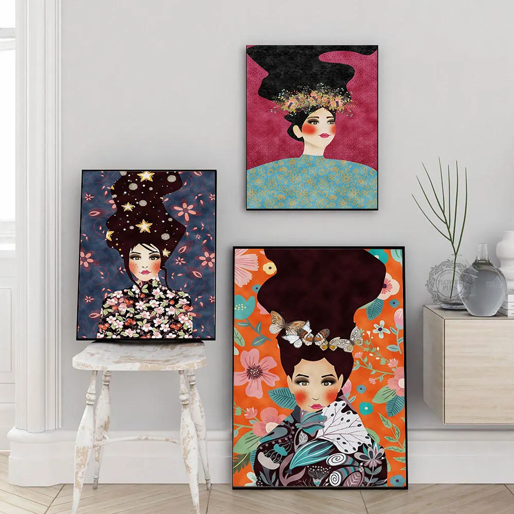 Постер с изображением девушки и цветка, Абстрактная Картина на холс...