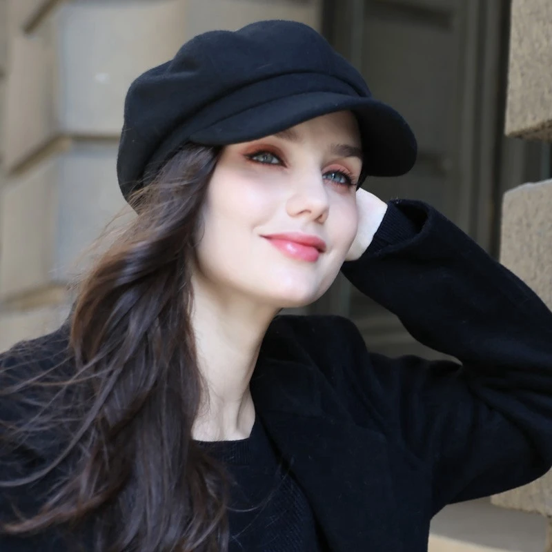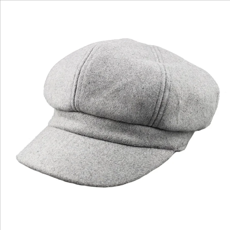 Осенне-зимняя шапка для женщин, однотонная восьмиугольная кепка газ...
